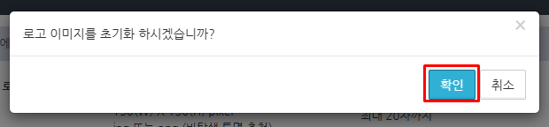 맞춤 로고 설정에서 업로드한 이미지 파일 아래의 초기화 버튼을 클릭합니다.