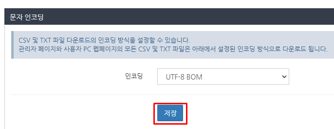 다운로드 시 적용되는 문자 코드 설정의 범위