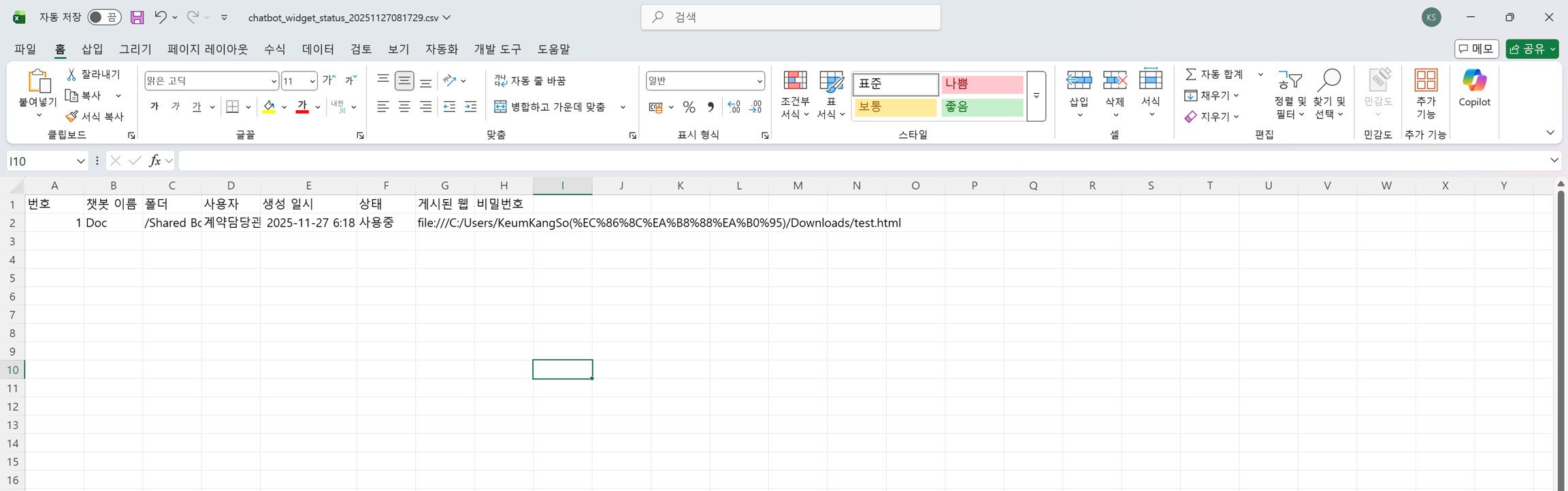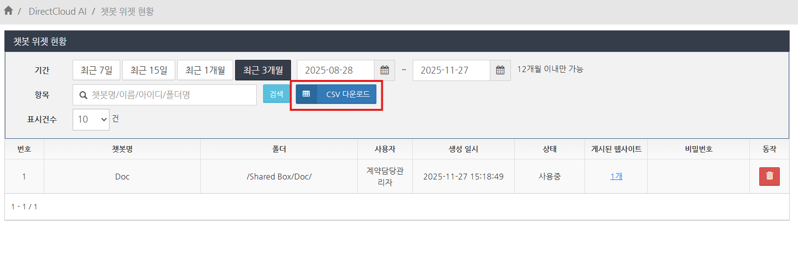 챗봇 위젯 현황을 CSV 파일로 다운로드하기
