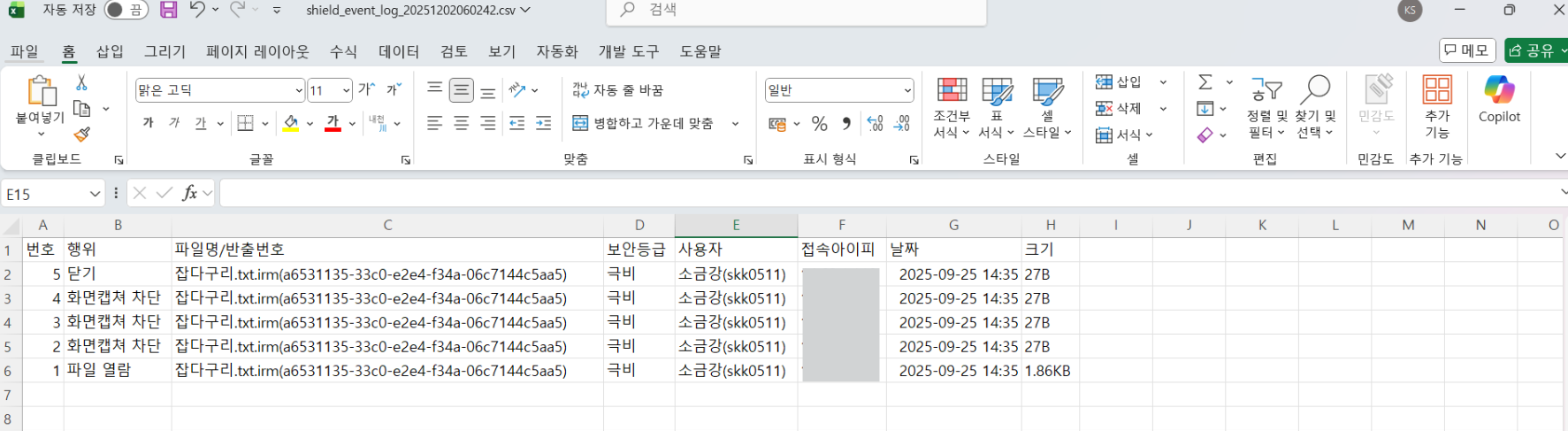 반출된 파일의 사용 이력을 확인하기