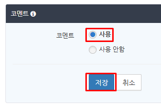 코멘트 설정에서 '사용'을 선택하고 저장 버튼을 클릭합니다.