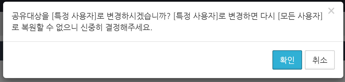 폴더의 공유 사용자를 '모든 사용자'에서 '특정 사용자'로 변경할 수 있으나, 한 번 변경하면 '모든 사용자' 폴더로 되돌릴 수 없습니다.