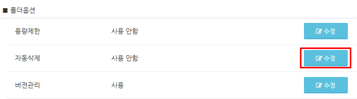 화면을 아래로 스크롤하고 폴더 속성 설정에서 자동 삭제의 '수정' 버튼을 클릭합니다.