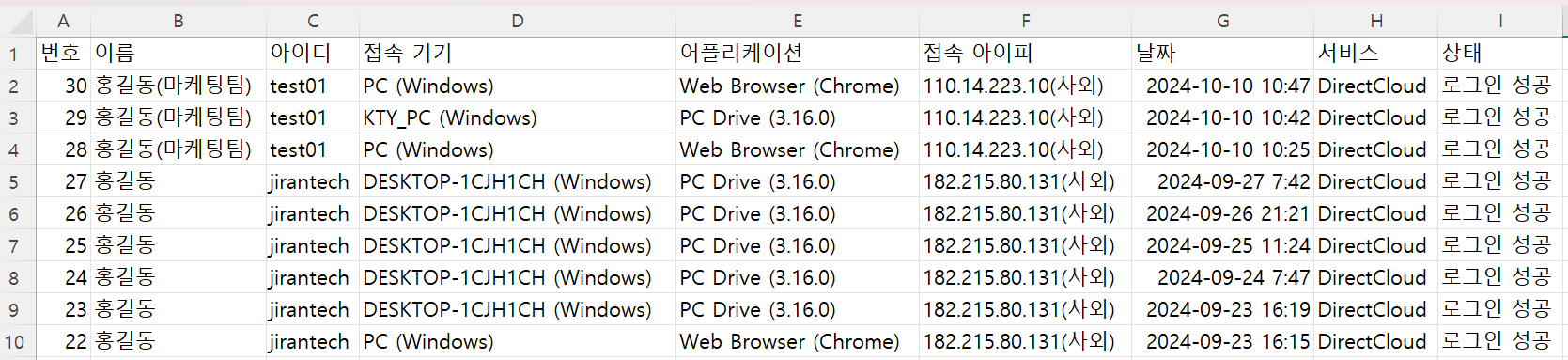 DirectCloud-SHIELD IRM 및 DC Migrator 에서 로그인한 이력도 기록됩니다.