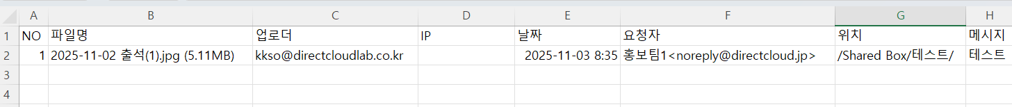 업로드 요청에 파일이 업로드된 이력이 표시됩니다. 자세한 내용은 아래와 같습니다.