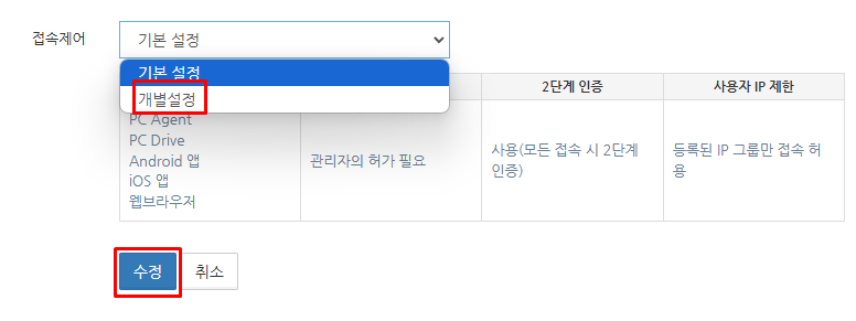 사용자에게 접속 제어의 개별설정 적용