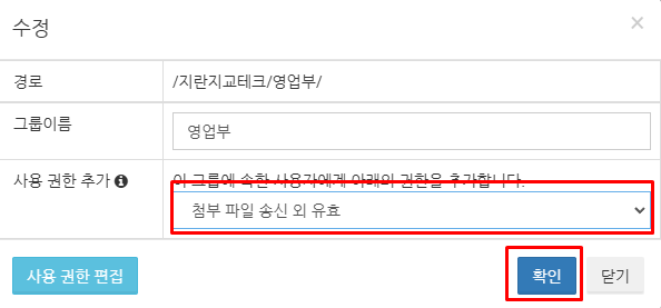 특정 그룹이나 사용자에게 첨부파일 전송 기능을 사용하지 못하도록 설정하는 방법