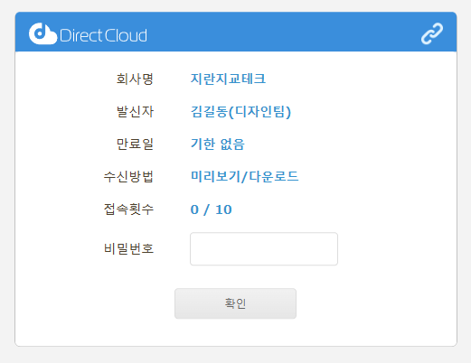 브라우저의 다른 탭에 링크 수신 화면이 표시됩니다. 이 화면에서 링크 설정을 확인할 수 있습니다.