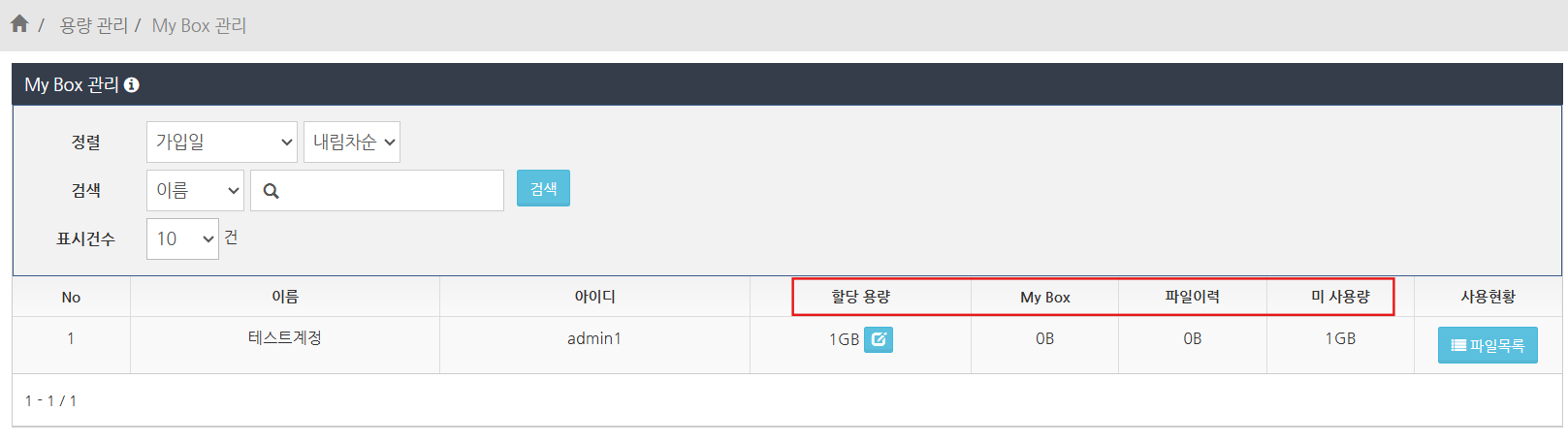사용자에게 할당된 My Box의 용량과 사용량을 확인하는 방법