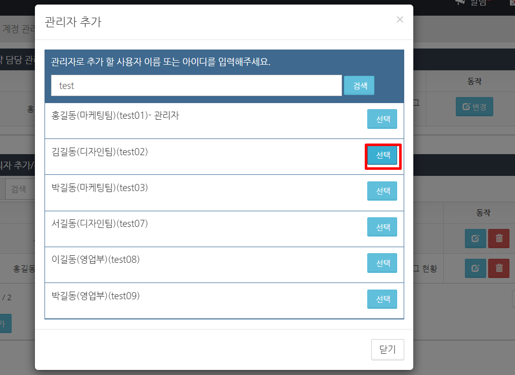 일반 관리자에게 추가할 사용자의 선택 버튼을 클릭합니다.