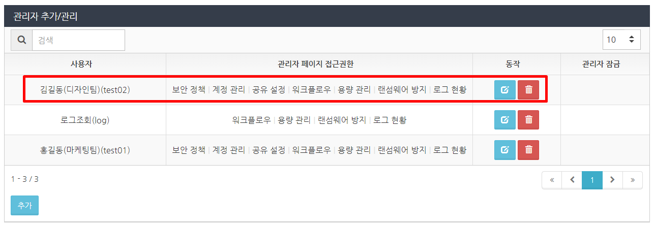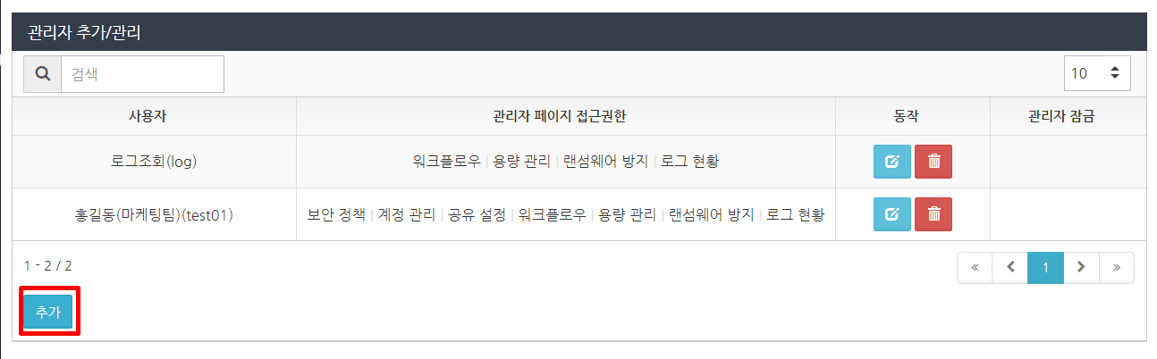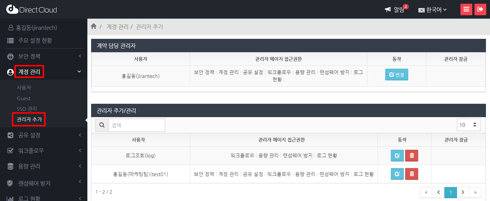 관리자 권한이 부여된 사용자는 관리자 페이지의 '계정 관리'를 사용할 수 있습니다.