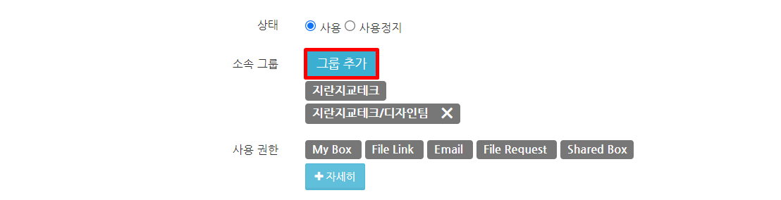 사용자 변경 화면에서 그룹을 추가하는 방법