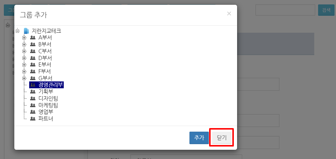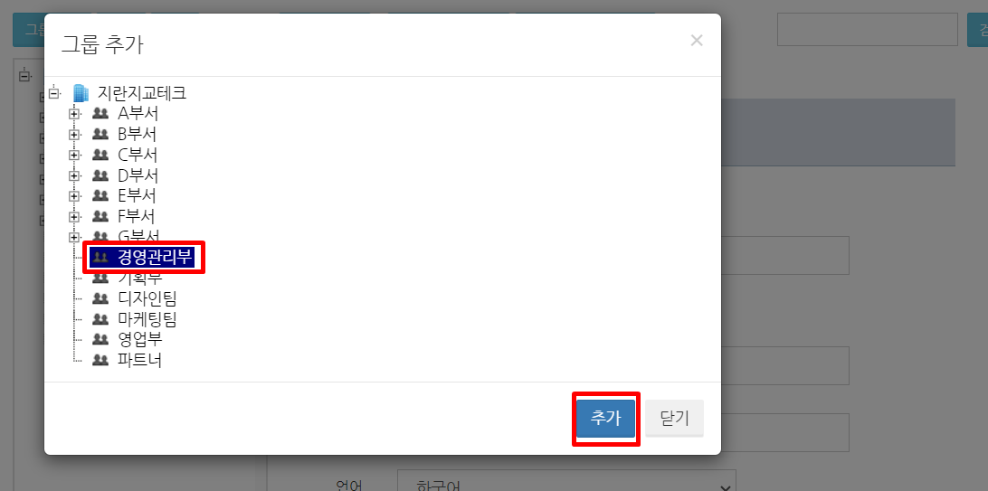 속할 그룹을 선택하고 추가 버튼을 클릭합니다.