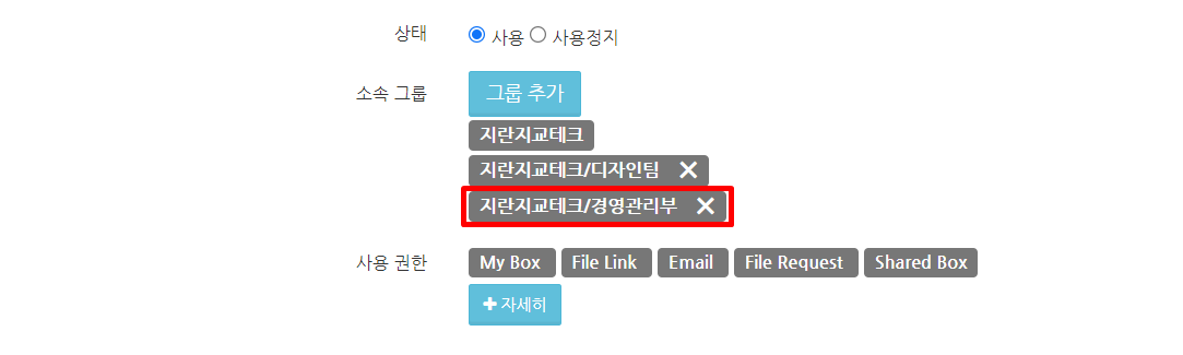 소속 그룹이 추가되었는지 확인하고 저장 버튼을 클릭합니다.