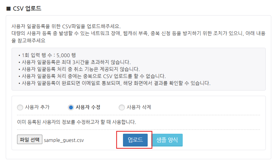 사용자 정보 변경을 위한 CSV 파일 업로드