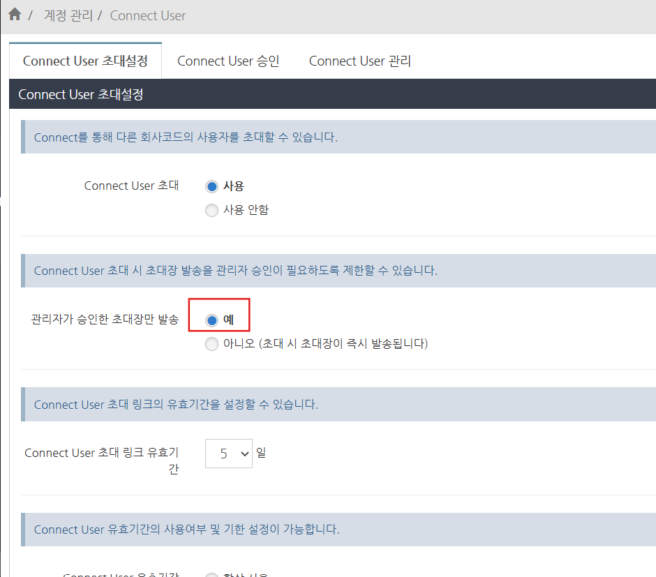 관리자 승인 후 Connect 초대 메일을 발송하도록 설정하는 방법