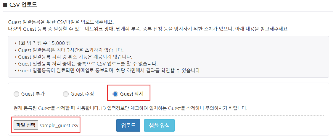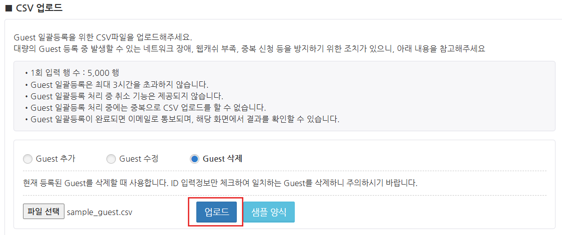 Guest 삭제용 CSV 파일 업로드