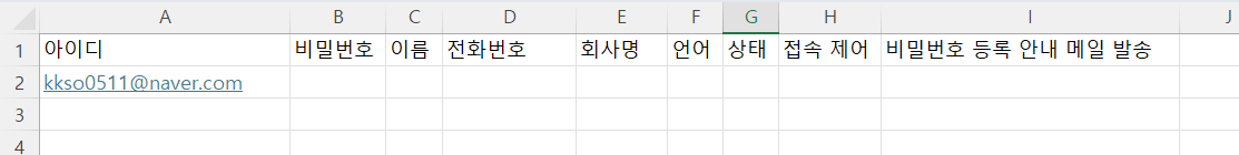 다운로드한 템플릿을 열어 ‘사용자 ID’ 열에 삭제하려는 Guest의 사용자 ID를 입력한 후, Guest 삭제용 CSV 파일을 작성합니다.