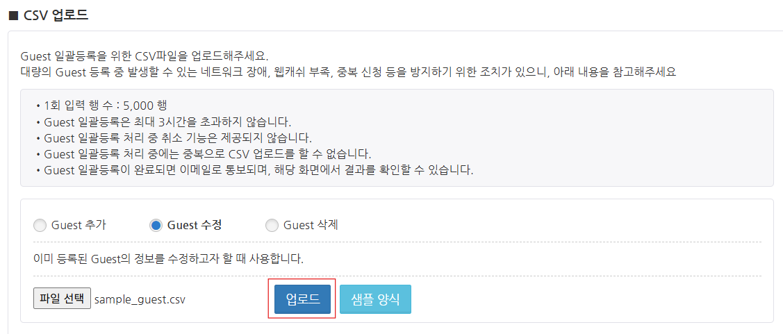 Guest 정보 변경을 위한 CSV 파일 업로드