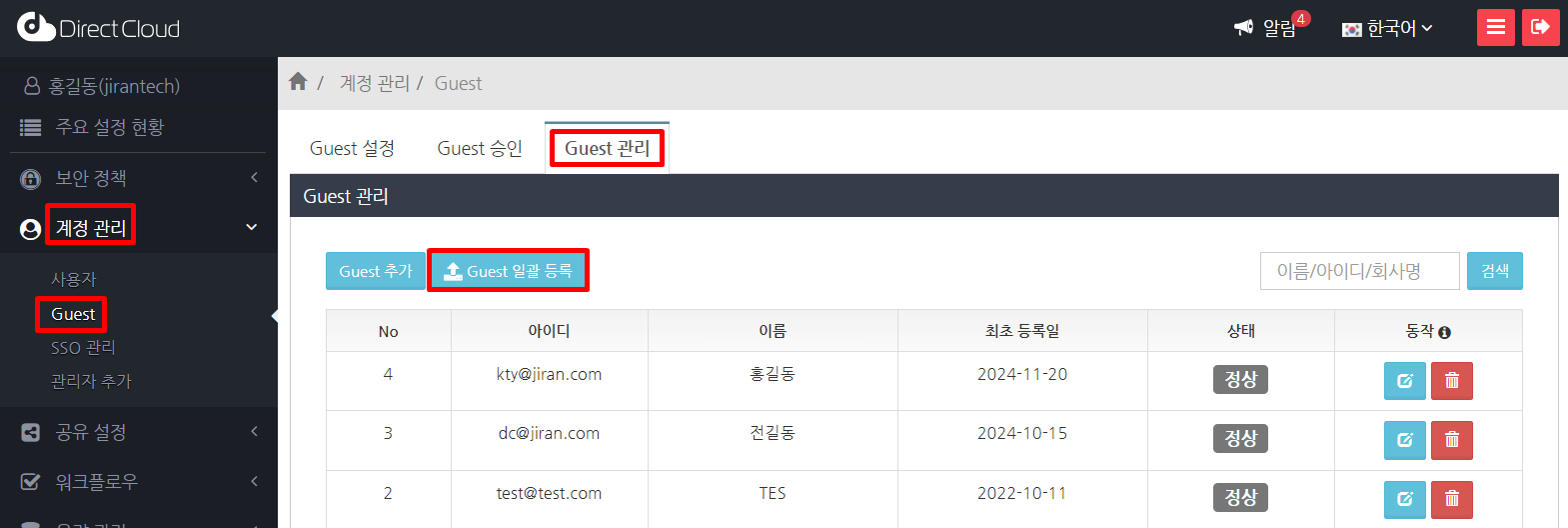 Guest 정보 수정에 대해서는 Guest 정보를 일괄로 변경하는 방법을 참고해 주시기 바랍니다.