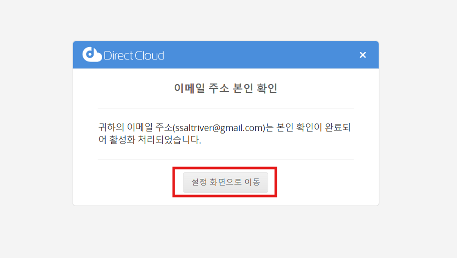 본인 확인이 완료된 메일 주소가 표시되어 있는지 확인합니다.