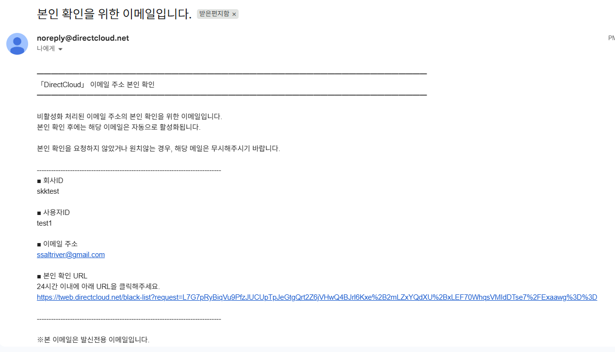 이 매뉴얼에서는, 사용자 메일 주소로 수신된 알림 메일에 포함된 본인 확인용 URL을 클릭하여 메일 주소를 활성화하는 절차에 대해 설명합니다.