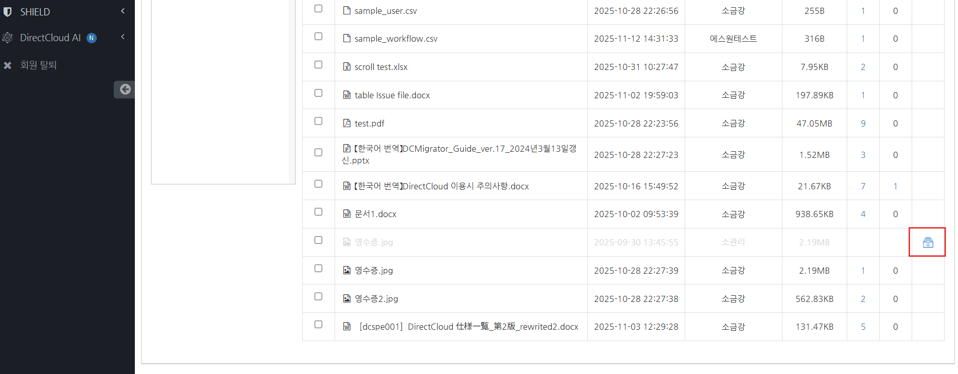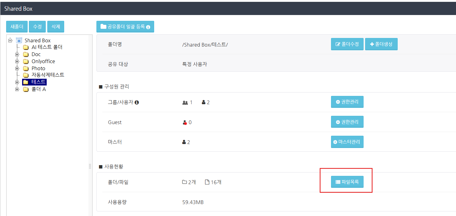 Shared Box의 폴더 및 파일 목록에서 대상 정보를 확인합니다.