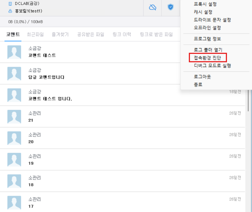 DirectCloud 드라이브 접속환경 진단 실행하기