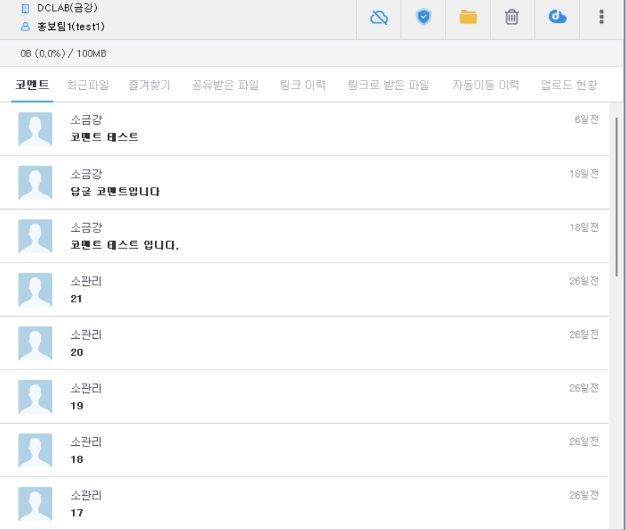 최근 7일간 DirectCloud 드라이브의 파일에 접근한 외부 프로그램의 이름과 횟수가 표시됩니다. 접근이 많은 순서대로 최대 5개의 프로그램이 표시됩니다.
