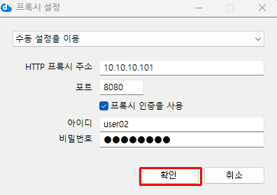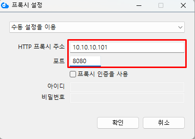 수동으로 프록시 설정 입력