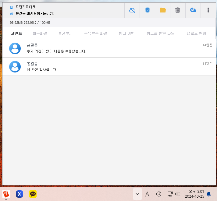 작업 트레이에서 DirectCloud 드라이브 아이콘을 클릭합니다. DirectCloud 드라이브 설정 화면이 표시됩니다.