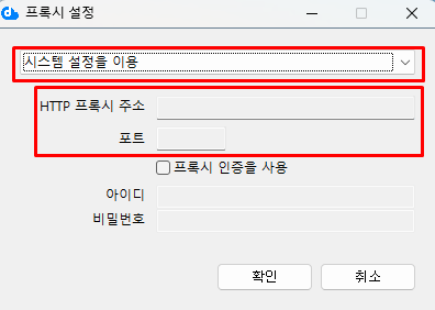 시스템의 프록시 설정 사용