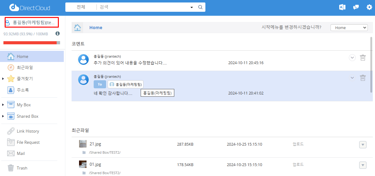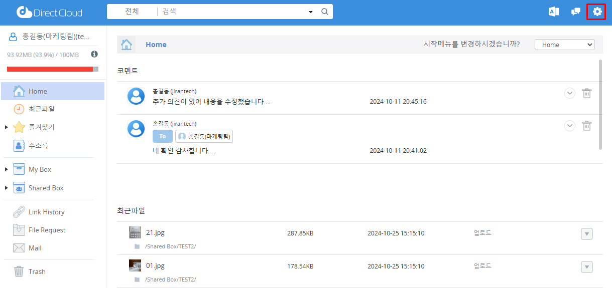 My Box 스토리지 여유 공간 부족 알림