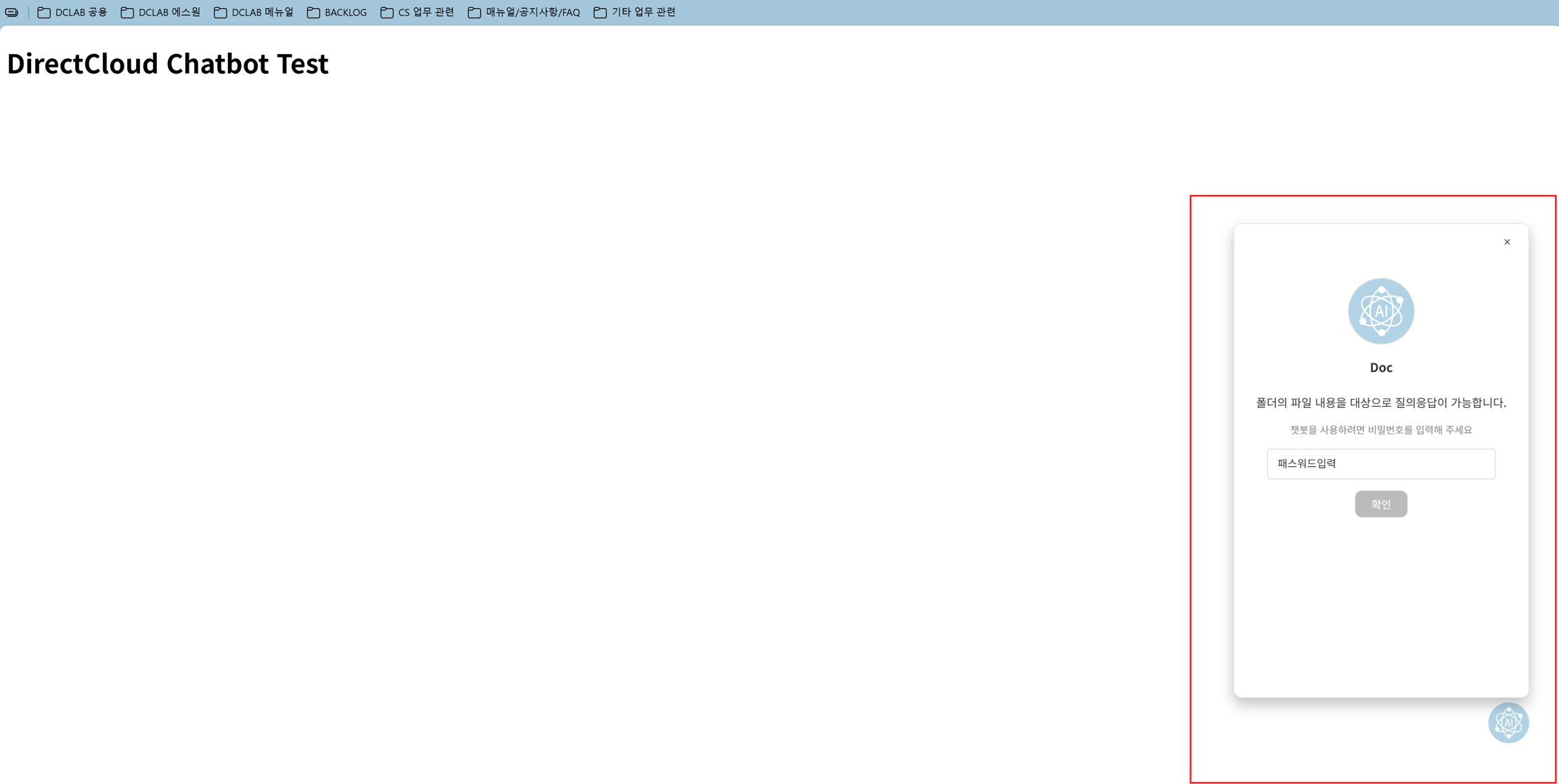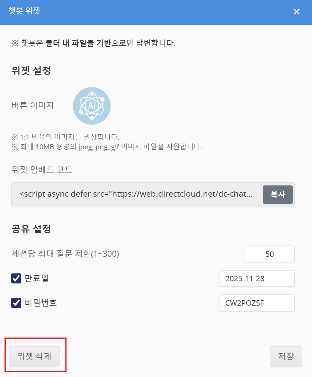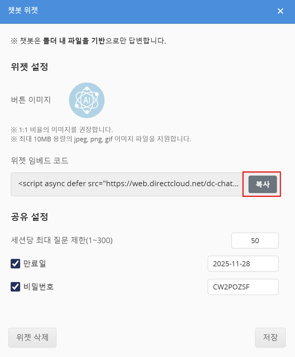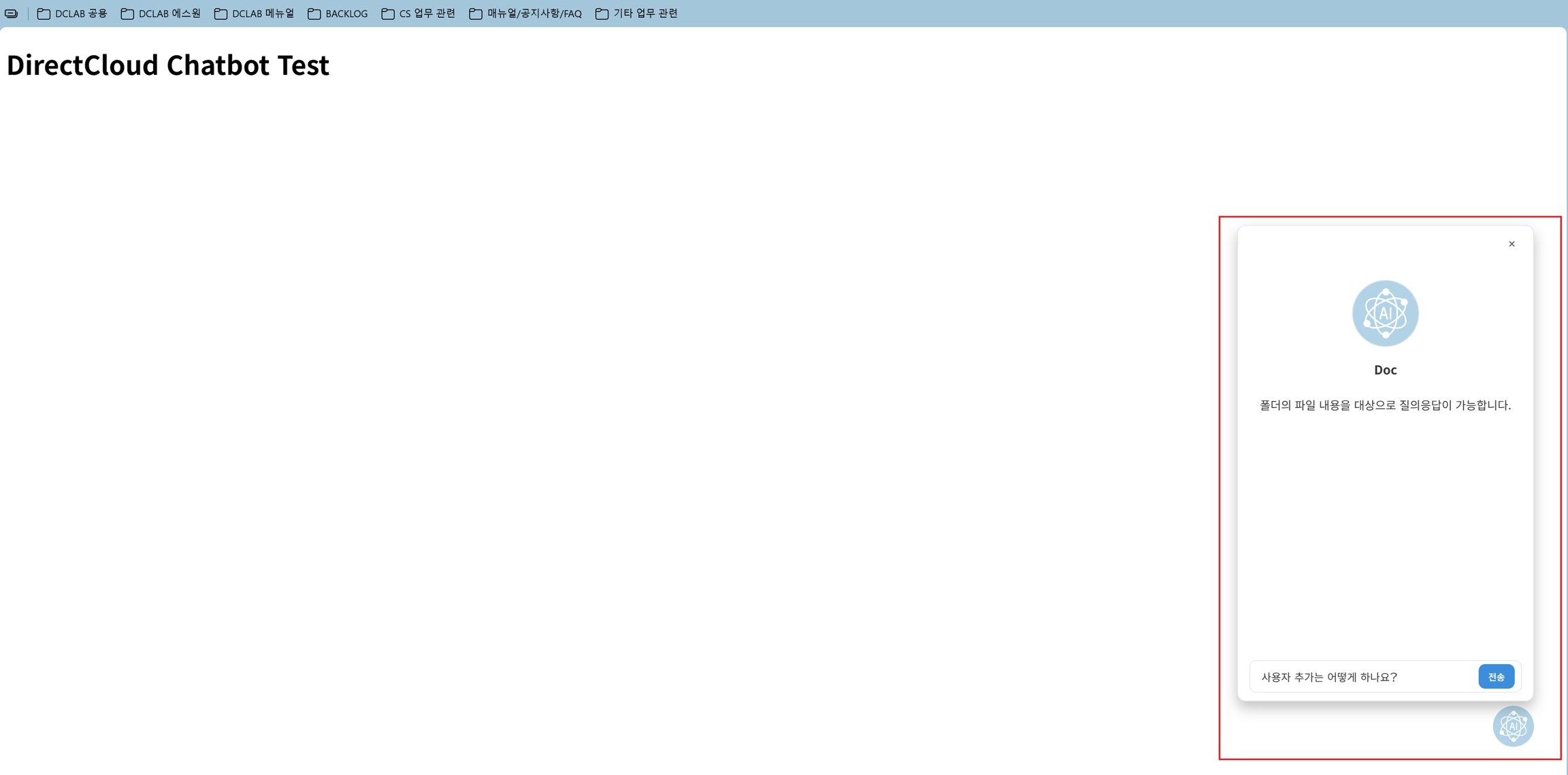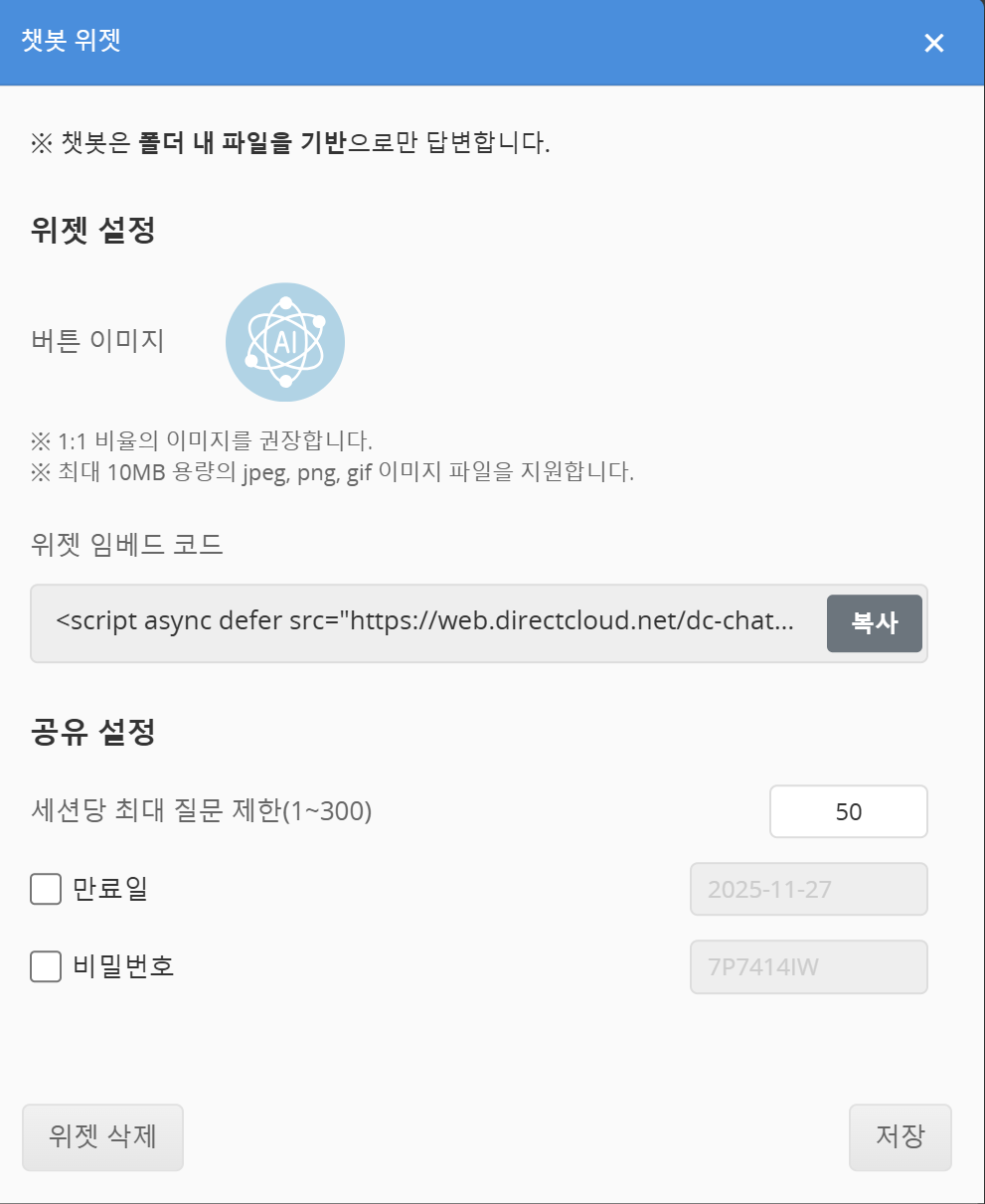 DirectCloud AI의 챗봇 위젯 사용 방법