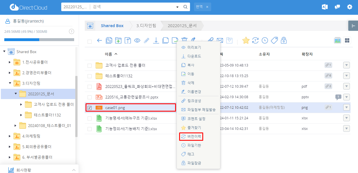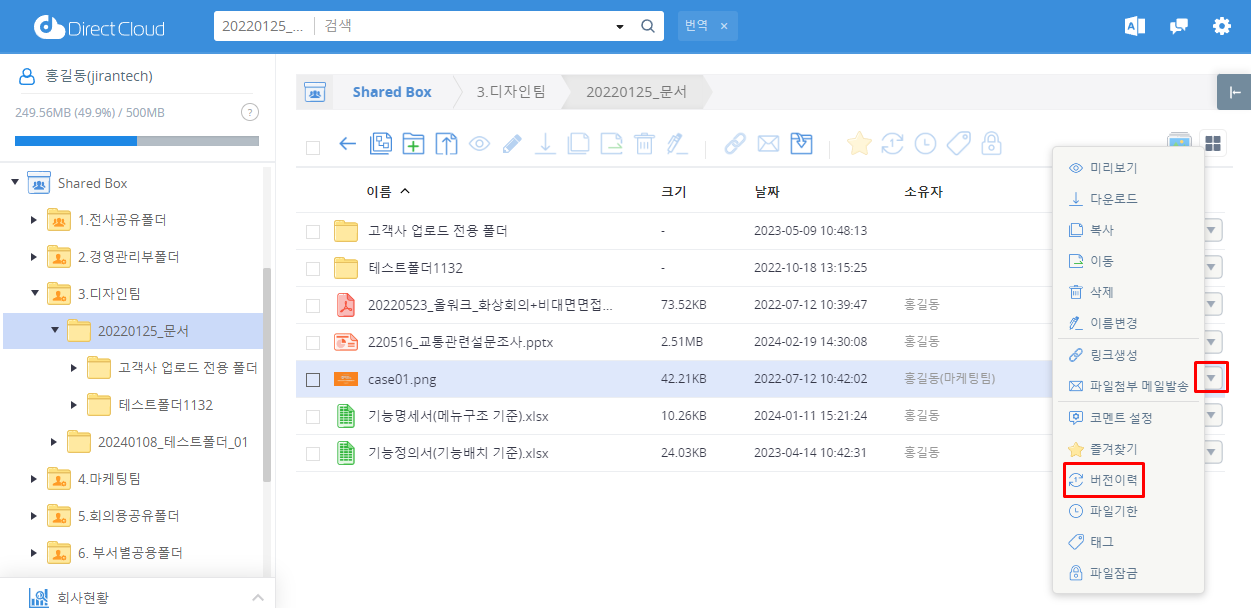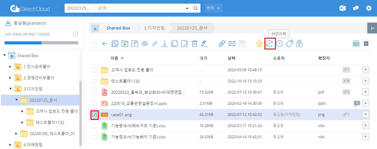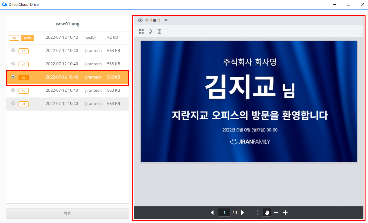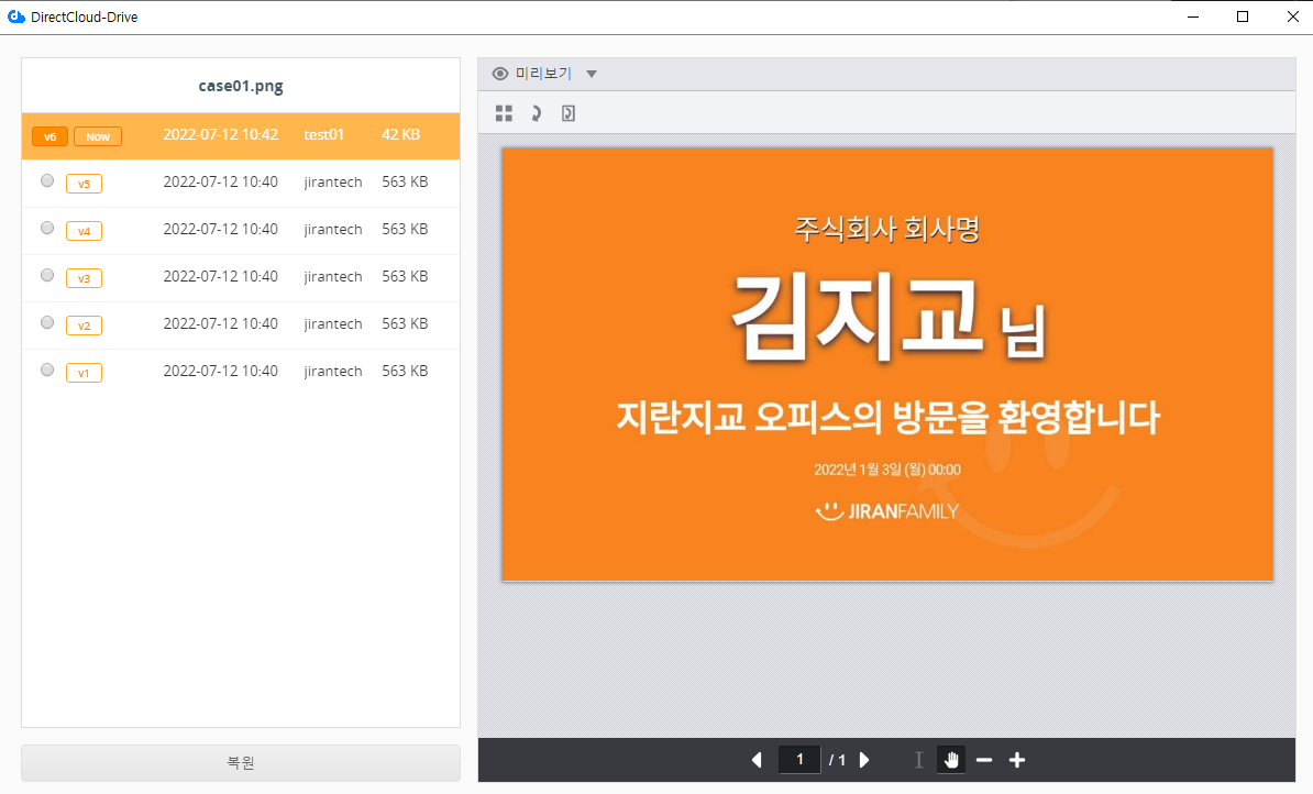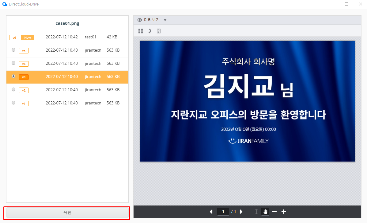 DirectCloud 드라이브에서 파일 버전 복원