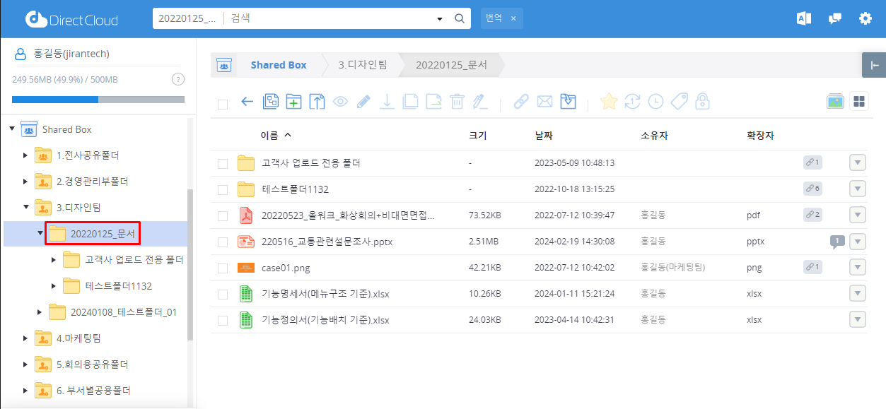 이 매뉴얼에서는 Shared Box의 조작 방법을 설명하고 있지만, Connect 폴더와 DLP 폴더에서도 동일한 절차로 조작할 수 있습니다.