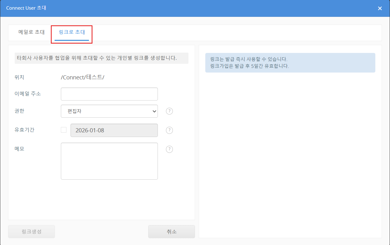 [링크로 초대 탭]