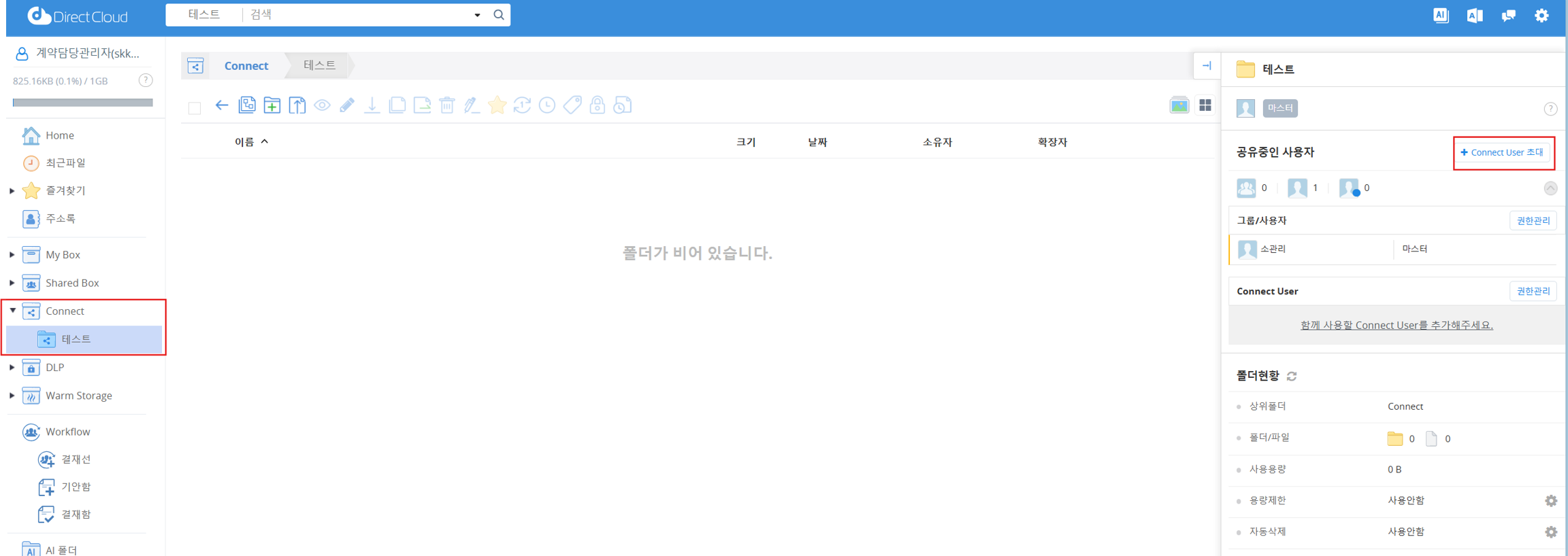 Connect는 DirectCloud의 회사 ID를 보유한 고객사 간에 특정 폴더를 공유하는 기능입니다. 이 매뉴얼 에서는 사내 사용자가 다른 회사 ID에 소속된 사용자를 Connect User로 초대하는 방법에 대해 설명합니다.