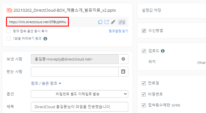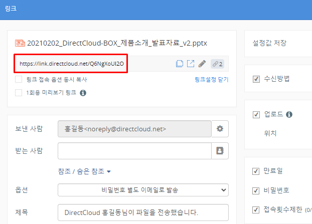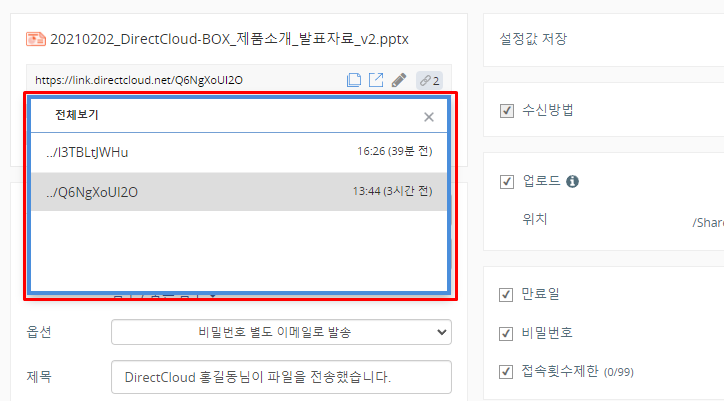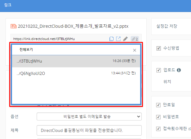 DirectCloud 드라이브에서 이전 링크 URL로 변경