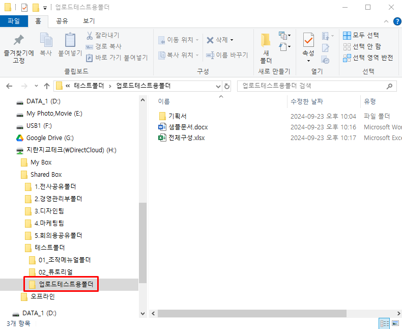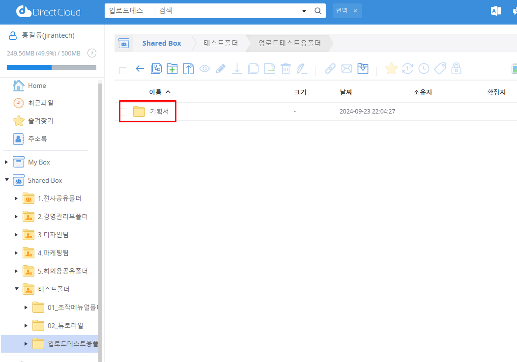 DirectCloud 드라이브에서 폴더 업로드