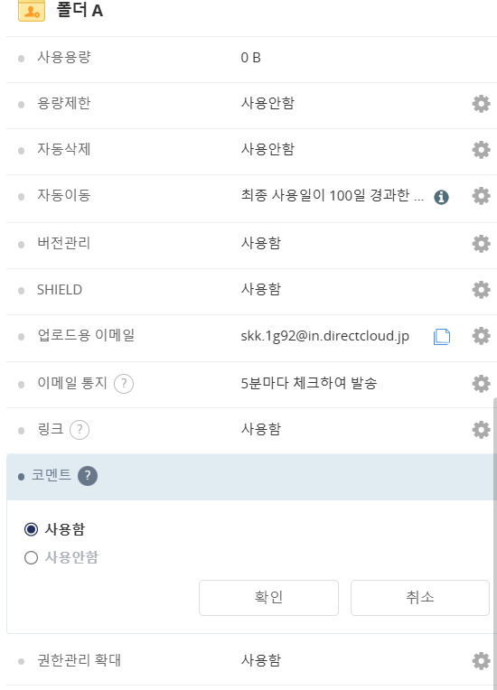 사용자 페이지의 특정 폴더에서 파일 코멘트 기능을 활성화 하는 방법