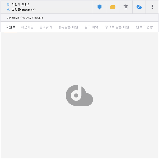 DirectCloud 드라이브의 작업 트레이가 표시됩니다.