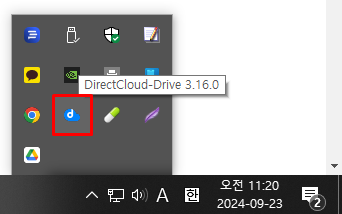 작업 트레이를 클릭하고 DirectCloud 드라이브 아이콘을 클릭합니다.