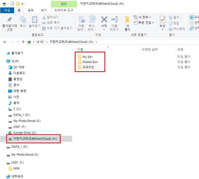탐색기에 DirectCloud 드라이브가 표시됩니다.