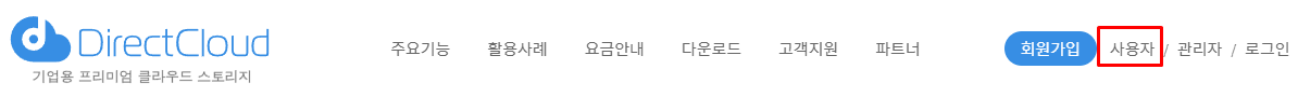 DirectCloud에는 '관리자 페이지'와 '사용자 페이지'의 두 가지 유형이 있습니다. 관리자 페이지에 설정된 보안 정책의 범위 내에서 사용자 페이지를 조작할 수 있습니다. 이 매뉴얼에서는 사용자 페이지에 로그인하는 방법에 대해 설명합니다.