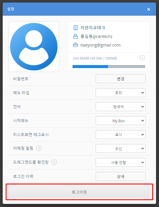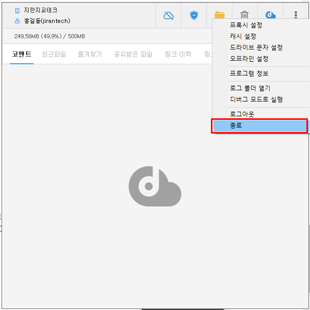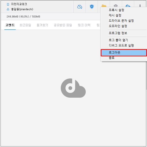 DirectCloud 드라이브에서 로그아웃