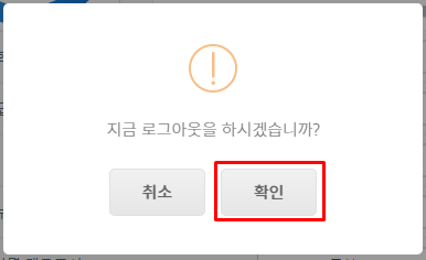 로그아웃 확인 화면이 표시됩니다.