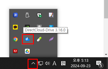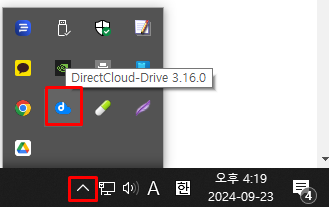 작업 트레이에서 DirectCloud 드라이브 아이콘을 클릭합니다.