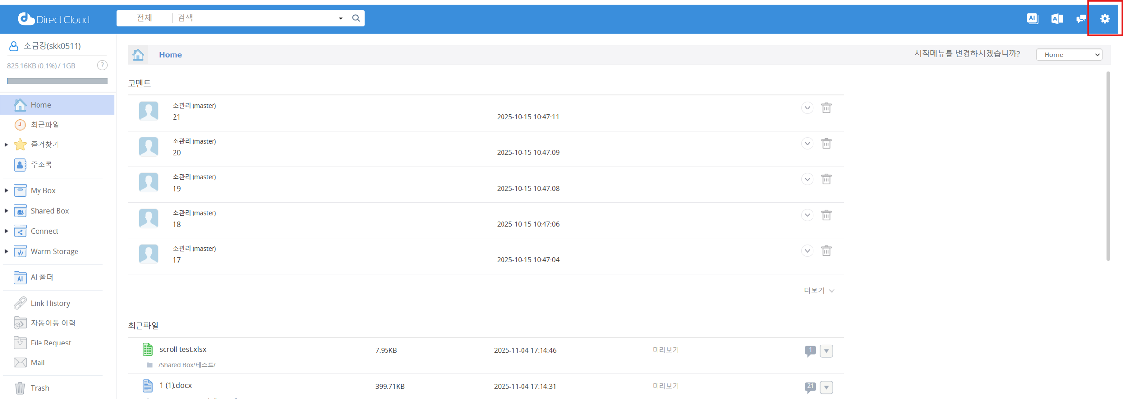 이 매뉴얼에서는 ‘설정’ 화면에서 현재 로그인 중인 사용자가 자신의 사용자 페이지 로그인 이력을 확인하는 방법을 설명합니다.