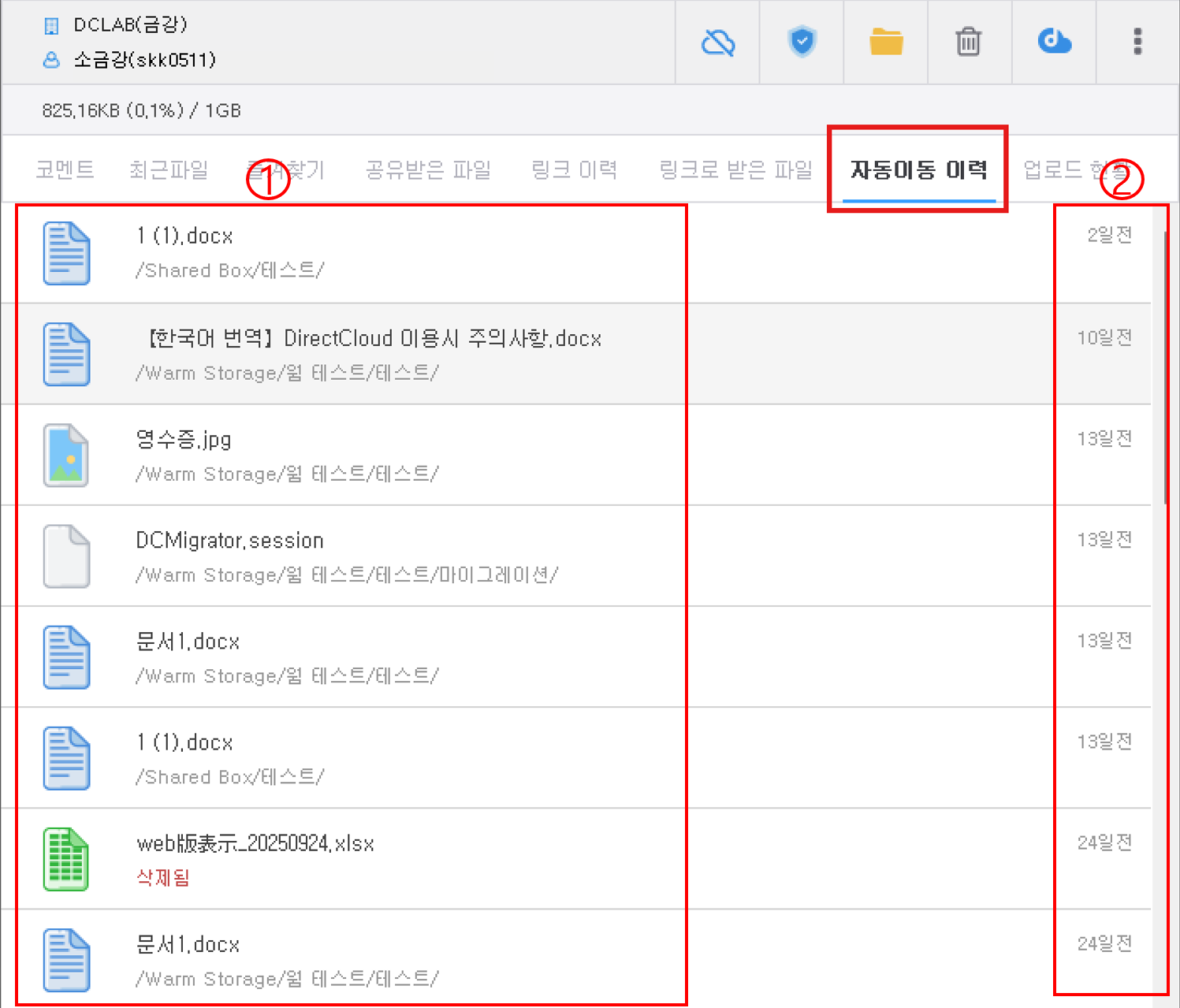 DirectCloud 드라이브에서 자동 이동 이력을 확인하기